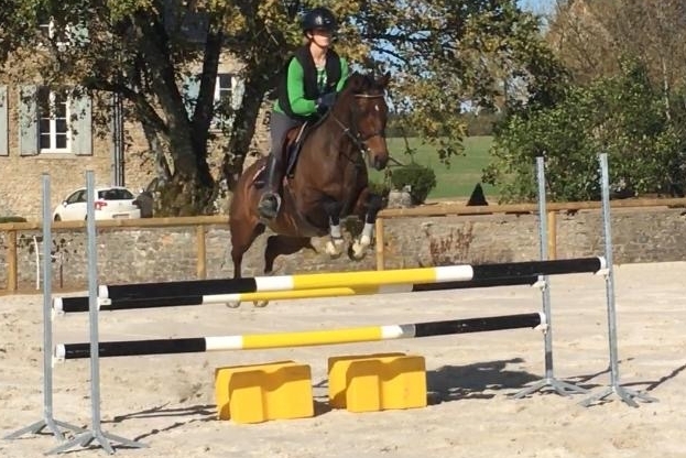 Elle est actuellement au travail chez une cavalière professionnelle, et est prête à aller en concours.