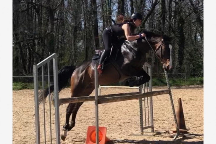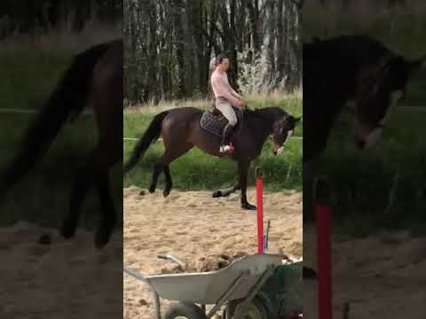 C'est une jeune jument très gentille et attachante. Elle est très franche à l'obstacle et bien mise sur le plat. Elle fera une super jument de complet. Elle peut sortir seule en balade, elle n'a peur de rien.