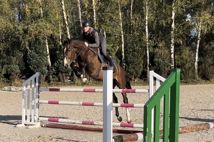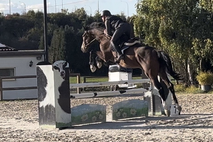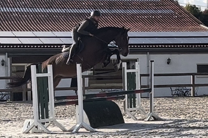 Monter en mors simple rênes longues, trot très agréable. Peut convenir à un débutant car cheval de confiance et très facile. Il enchaine déjà le m20 et il est toujours bien au dessus.